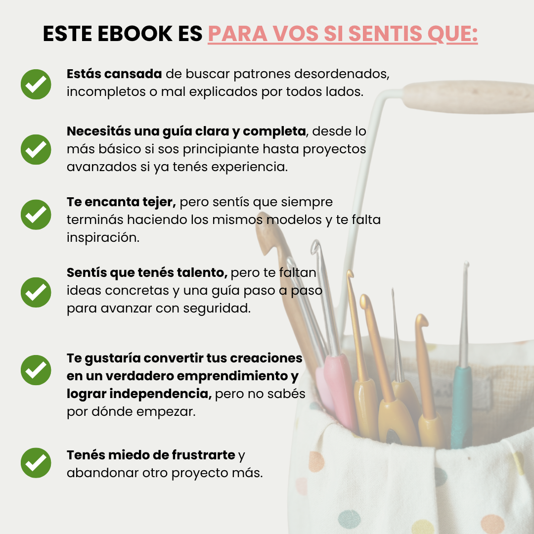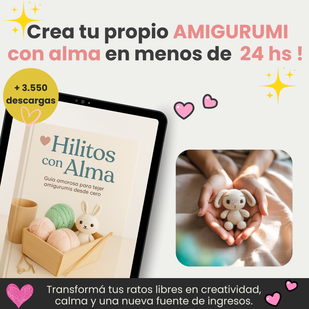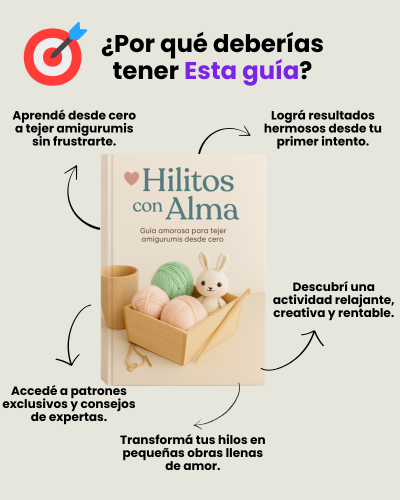 Con Hilitos con Alma , vas a descubrir que crear con tus manos es mucho más fácil, relajante y hermoso de lo que imaginabas. Una guía cálida, visual y 100% práctica para que te animes a dar tus primeras puntas sin miedo.